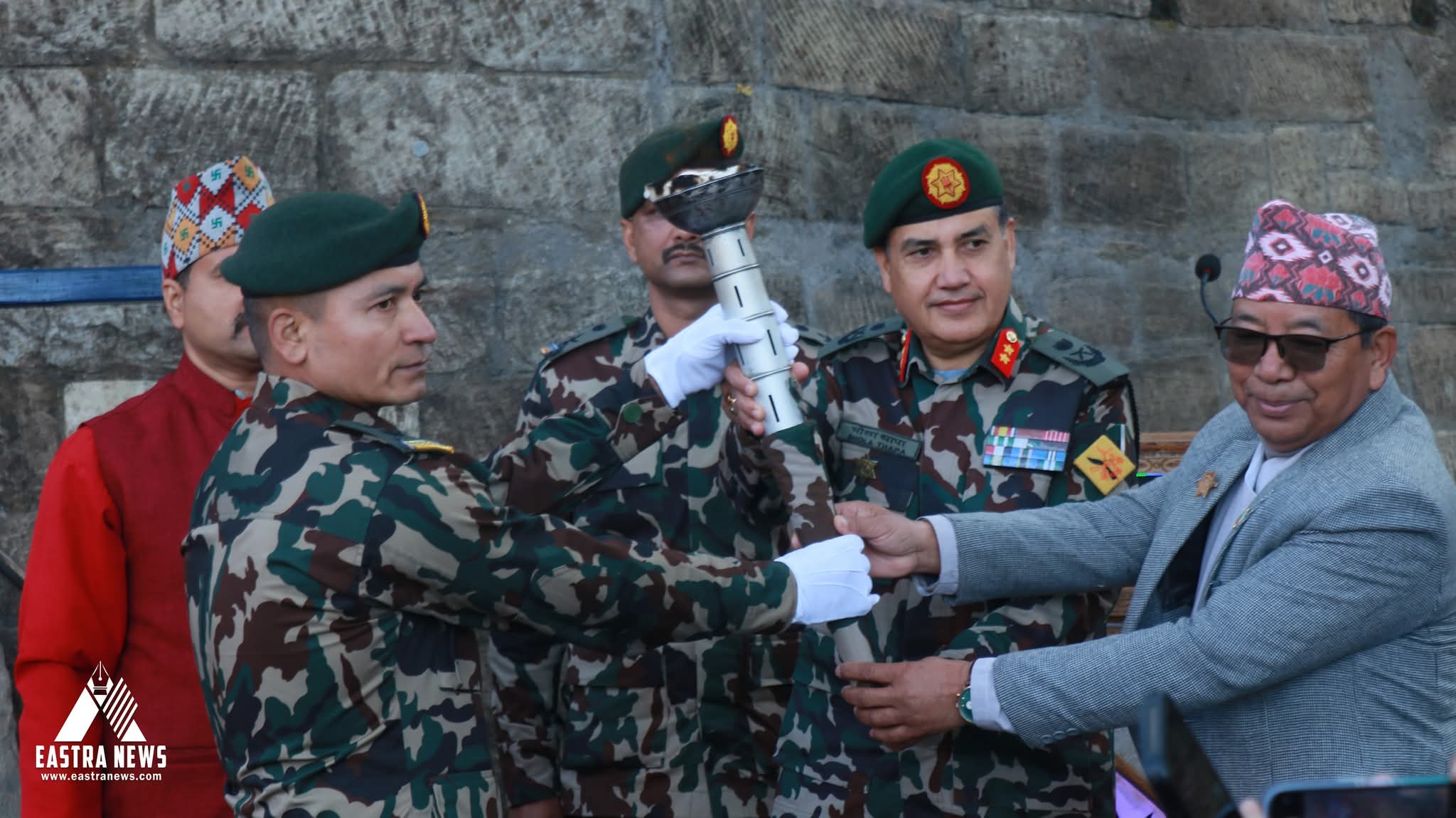 गोरखा । पृथ्वीनारायण शाहकालीन पोशाकमा टर्च र राष्ट्रिय झण्डा बोकेर नेपाली सेनाको टोली गोरखाबाट काठमाडौँतर्फ पैदल यात्रा सुरु गरेको छ।