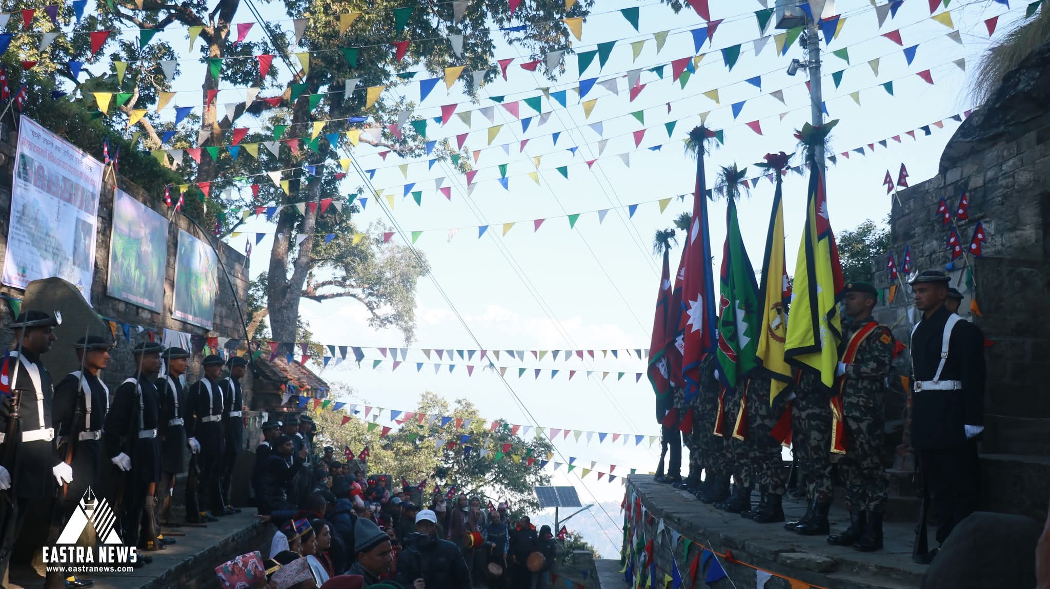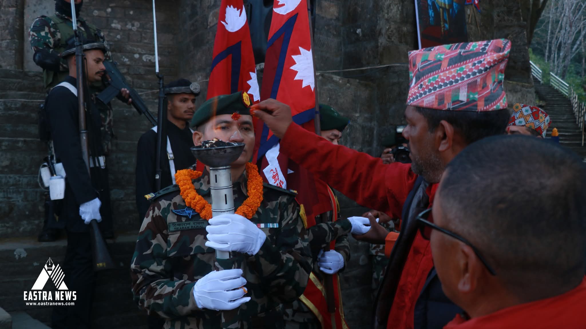 नेपालको राष्ट्रिय झण्डा, टर्च तथा नेपाली सेनाका प्रथम पाँच कम्पनी—श्रीनाथ, कालीबक्स, पुरानो गोरख, बर्द बहादुर र सवुज—का झण्डासहित सेनाको टोली गोरखा दरबारबाट हिँडेको हो।