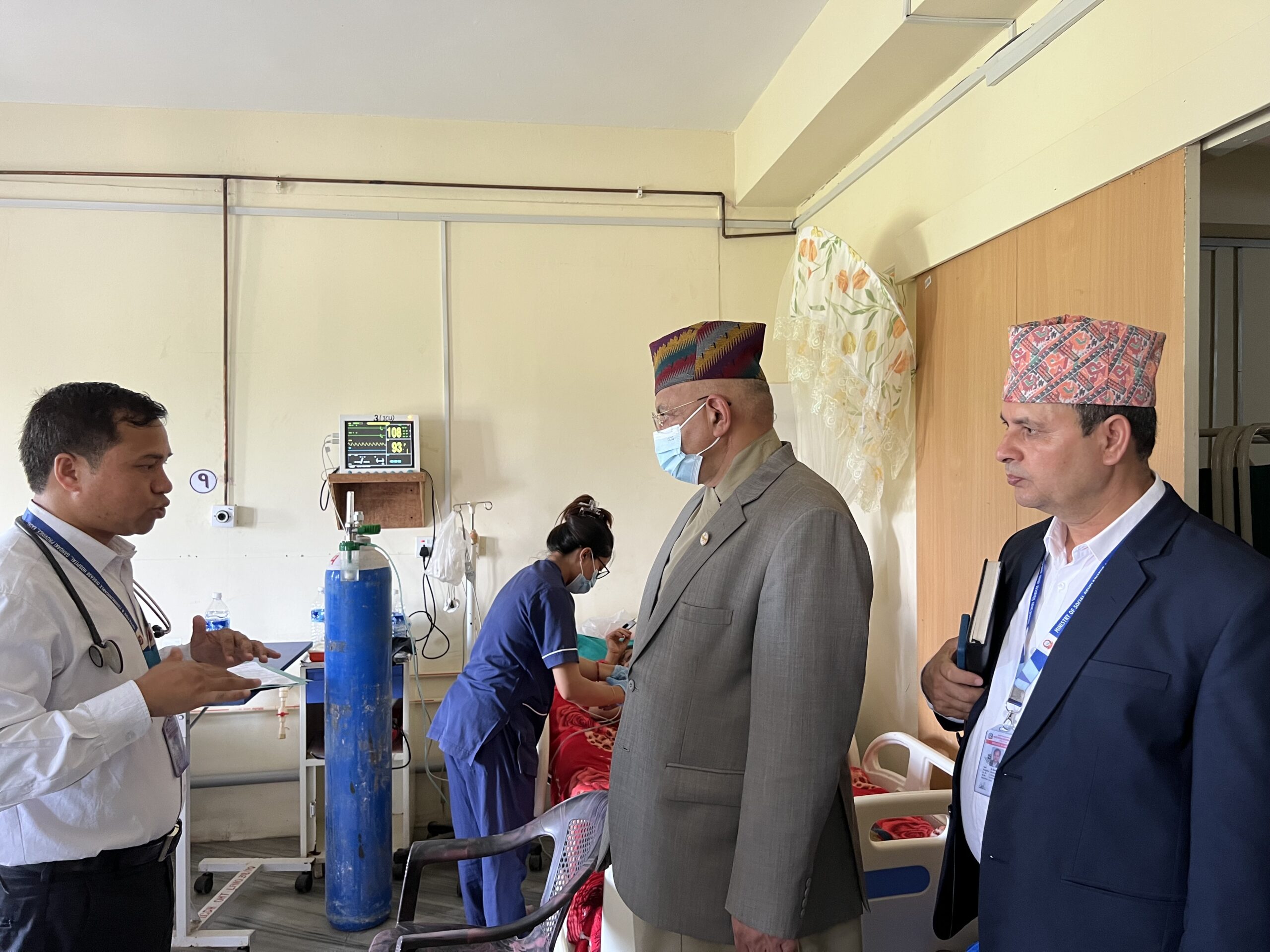 मुख्यमन्त्री पाण्डेले अस्प्तालमा रहेका बिरामीको अवस्था, उपचार गराउन आउने दर, प्रविधि र उपकरणको उपलब्धता, जनशक्तिको अवस्था, भौतिक अवस्था लागयतका बारेमा जानकारी लिएका थिए । सामाजिक बिकास तथा स्वास्थ्य मन्त्रालयका सचिव बिनोदबिन्दु शर्मा, अस्पतालका डाक्टर बिकास गौचन लगायतले अस्पतालको अवस्थाका बारेमा जानकारी गराएका थिए ।