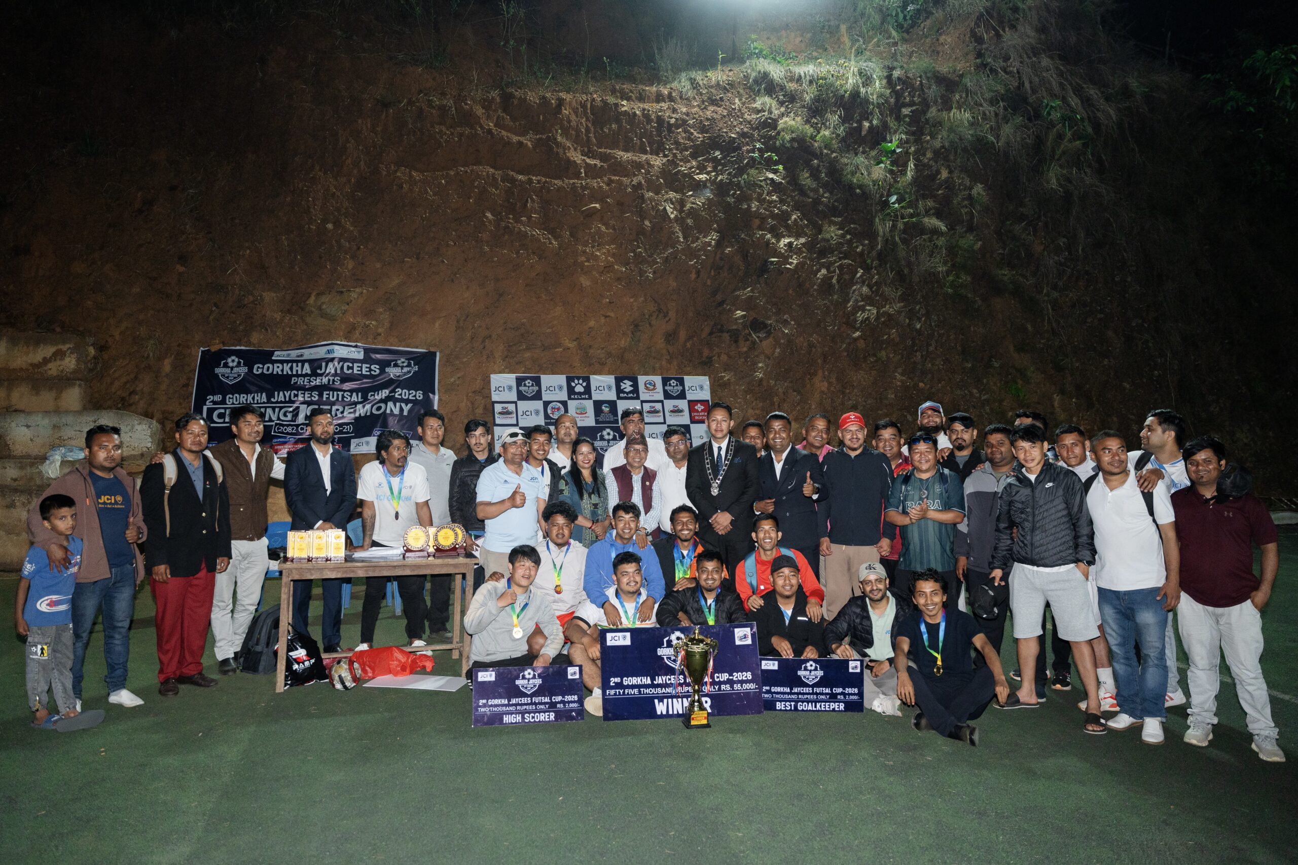 गोरखा । गोरखा जेसीजद्वारा आयोजित दोस्रो गोरखा जेसीज फुटसल प्रतियोगिता २०२६ सफलतापूर्वक सम्पन्न भएको छ। गोरखा नगरपालिका–९ स्थित दलबञ्ज्याङ फुटसल मैदानमा चैत २० र २१ गते सम्पन्न प्रतियोगितामा सात जेसीज शाखाका आठ टोलीको सहभागिता रहेको थियो।