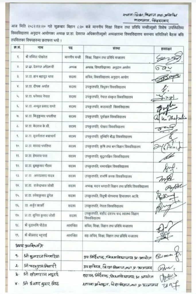 उक्त निर्णयमा उपकुलपतिहरूले हस्ताक्षरसमेत गरिसकेका छन्। छलफलमा संरचना हटाउने क्रममा कुनै समस्या आए तत्काल सुरक्षा निकायलाई जानकारी गराउन र आवश्यक परे विश्वविद्यालय परिसरमै अस्थायी वा स्थायी सुरक्षा युनिट स्थापना गर्न सकिने उल्लेख गरिएको छ। यसका लागि शिक्षा मन्त्रालयमार्फत गृह मन्त्रालयसँग समन्वय गरिने जनाइएको छ ।